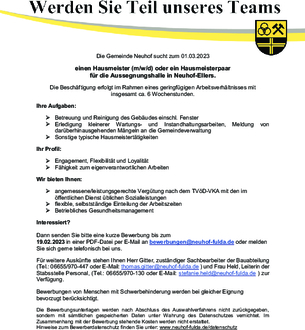 Stellenausschreibung Hausmeister für Aussegnungshalle Neuhof-Ellers