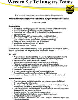 Stellenausschreibung Mitarbeiter/in (m/w/d) für die Stabsstelle Bürgerservice und Soziales