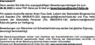 Vorheriger Artikel: Stellenausschreibung Hausmeister für Aussegnungshalle Neuhof-Ellers