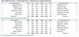 Leider konnte das Ziel - Heimsieg ohne Punktverlust - nicht erreicht werden. Mit 765 Holz und 779 Holz stellten die Gäste aus Lollar die zwei besten Tagesergebnisse, was die Grundlage für den Gewinn des Zusatzpunktes war. Damit belegt die 2. Mannschaft nach Abschluss der Saison den zweitletzten und damit einen Abstiegsplatz (- 4 Punkte). Ob tatsächlich ein Abstieg erfolgt, wird sich nach den Anmeldungen für die nächste Saison zeigen. Die übrigen Ergebnisse der Gäste: 747, 703, 675 und 633 Holz.