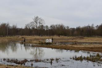 „Jetzt ist erstmal alles startklar für die Brutsaison der Kiebitze“ freut sich Christian Gelpke, Kreisvogelschutzbeauftragter und Arbeitskreisleiter der HGON (Hessische Gesellschaft für Ornithologie und Naturschutz) im Schwalm-Eder-Kreis. Der Ornithologe aus Singlis ist aktives Vorstandsmitglied im Landschaftspflegeverband Schwalm-Eder e.V. (LPV) seit dessen Gründung. Neben Gelpke unterstützten weitere 11 freiwillige Helfer und Helferinnen unterschiedlichen Alters Franziska Mehlhorn und Isabel Schmidt von der Geschäftsstelle des LPV in Zennern am letzten Samstag, dem 22. Februar 2025 tatkräftig bei einem Arbeitseinsatz in Wabern für eine besonders auffällige Vogelart - den Kiebitz.