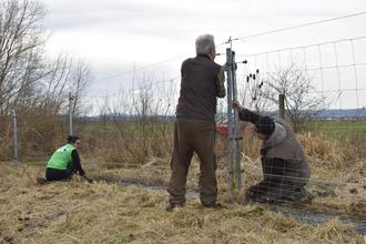 Durch den nun zusätzlich erfolgten Arbeitseinsatz des LPV sollen die derzeit aus ihren Überwinterungsgebieten zurückkehrenden Kiebitze nun möglichst gute Bedingungen für eine erfolgreiche Brutsaison und die Aufzucht ihrer Jungen vorfinden. Neben dem Freischneiden der Brutinseln wurde vor allem die Gummimatte unter dem Knotengeflechtzaun von Aufwuchs und Laubansammlungen befreit und die Isolatoren für die stromführenden Litzen entlang des Zaunes ausgetauscht. „Um zu verhindern, dass Füchse oder Waschbären die Eier oder jungen Kiebitze erbeuten sind ein intakter Zaun und eine