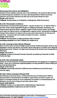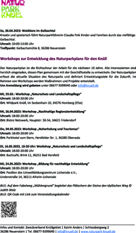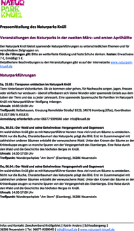 Detailliertere Beschreibungen zu den Veranstaltungen gibt es auf der Internetseite www.naturpark-knuell.de