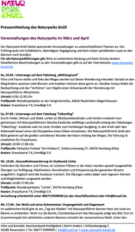Detailliertere Beschreibungen zu den Veranstaltungen gibt es auf der Internetseite www.naturpark-knuell.de