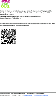 Im waldreichen Knüll gibt es am „Tag des Waldes“ mit Naturparkführer Karsten Hess viel rund um Bäume zu entdecken. Nicht nur die Buche, Charakterbaumart des Naturparks prägt das Bild. Erst im Zusammenspiel mit zahlreichen anderen Bäumen entsteht der verwunschene Wald. Unter den Kronen der Bäume an der Krötenkuppe zeugen so manche Spuren von der Vergangenheit des Eisenberges. Eine Reise durch den Wald und die Geschichte des höchsten Berges im Knüll.