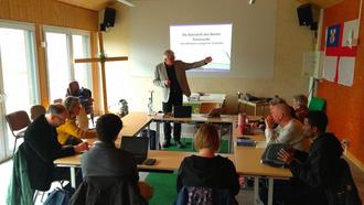 Neben Unterricht in Katechese, Kontemplation (Schauen der göttlichen Wirklichkeit) konzentrierte sich die Samstagsvorlesung auf das Verständnis und Auslegung des Neuen Testaments, welche durch den Dozenten Thomas Jeising (Homberg) Bibelbund tiefgehend und durch Powerpoint dargestellt wurde.