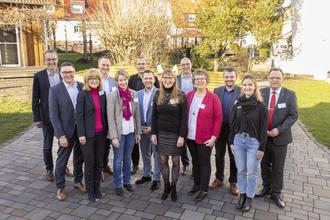 Die Sponsoren 2023 des Bildungsfonds Schwalm-Eder: (v. li.) Bernd Wilke (Agentur für Arbeit Korbach), Axel Becker (B. Braun), Beate Lopatta-Lazar (Dr. Schumacher), Eugen Knoth (IHK), Nina Hoffmann (Wikus), Knuth Fischer (Hepla), Martin Kuge (Faubel), Diana Meier (Hepla), Michael von Bredow (Kreissparkasse Schwalm-Eder), Sonja Metz (Edeka), Andre Jüttner (EAM), Alisa Komossa (VR PartnerBank) und Landrat Winfried Becker.