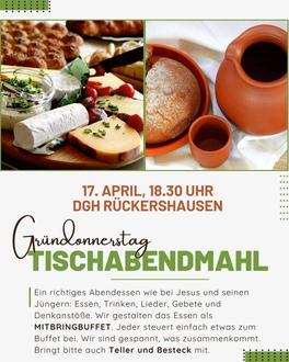 An Gründonnerstag, 17.04. haben wir etwas Neues für unser Kirchspiel geplant. Herzliche Einladung zum Tischabendmahl nach Rückershausen.