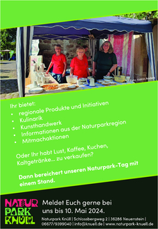 Dann bereichert unseren Naturpark-Tag mit einem Stand.