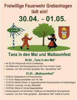 es ist wieder soweit: Am 1. Mai 2025 feiert Grebenhagen zum 40. Mal das traditionsreiche Maibaumfest – ein besonderes Jubiläum, das zeigt, wie sehr Brauchtum, Gemeinschaft und Lebensfreude in unserem kleinen, aber engagierten Ortsteil verwurzelt sind.