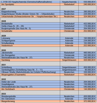 Alle aufgeführten Straßen sind der Zustandsklasse 4 zuzuordnen!