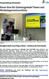 Das VGZ Schwalm veranstaltet am Samstag, dem 21.01.2023 einen Workshop zum Themenbereich Marketing. Taking care of your brand - für Gründer*innen oder Markenverantwortliche eines Unternehmens ist dies eine Schlüsselherausforderung. In diesem praxisorientierten Seminar dreht sich alles um die Frage, wie sie Ihre Marke und Ihr Marketing rechtzeitig, am besten schon vor der Gründung optimal planen und auch später im Businessalltag konsequent auf Erfolg ausrichten. Wir stellen uns gemeinsam die richtigen Fragen, finden Antworten und sie nehmen daraus kreative, praxisorientierte Lösungsansätze mit, aus denen sie leicht eine eigene Strategie ableiten können.