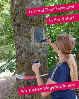 Gesucht werden Ehrenamtliche, die gerne draußen in der Natur unterwegs sind, wandern und etwas an andere Naturbegeisterte zurückgeben möchten. Wegepatinnen oder -paten übernehmen die Betreuung des insgesamt 3,6 Kilometer langen Fabelweges „Kin Orem“.