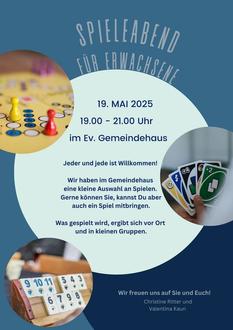 | 19.05., 19.00 Uhr | Spieleabend für Erwachsene |