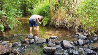 In Raboldshausen kann man mit Naturparkführerin Anna Kleine in das Superlement Wasser reinschnuppern © Katrin Anders