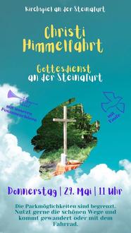 An Himmelfahrt, 29.05., feiern wir einen gemeinsamen Gottesdienst mit Taufen an der Steinafurt.