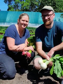 Mairüben und Rote Beete frisch geerntet: Melanie und Rene Lehmann von der Gemüse-Marktgärtnerei Lehmann in Niedenstein sind Partner des Pilotprojekts der Ökomodellregion Schwalm-Eder.