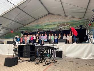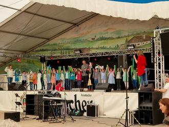 Den Abschluss des Nachmittags bildete der Auftritt der „Schwälmer Trachtengruppe Loshausen“. Unter der Leitung von Anja Wimmer wurden den Zuschauern Erklärungen über die Schwälmer Tracht, verschiedene Schwälmer Tänze, vorgeführt von 8 Kindern in Tracht, sowie ein Gedicht auf Schwälmer Blatt mit anschließender Übersetzung ins Hochdeutsche, geboten. Besonders hervorzuheben ist hierbei die musikalische Begleitung am Keyboard durch die 12-jährige Mia, welche blind ist und sich selbstständig das Keyboardspielen angeeignet hat. Sie hat mit ihrer herausragenden Leistung alle Anwesenden in ihren Bann gezogen.