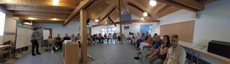22 Workshopteilnehmende fanden sich im Naturbildungszentrum des Wildpark Knüll erstmals zusammen, um über die inhaltlichen Linien eines Konzeptes zu sprechen, das am Ende des Jahres den Förderantrag beim Aller.Land-Steuerungsbüro in Berlin eingereicht werden soll. In einer intensiven, offenen und teilweise emotional geführten Diskussion war immer wieder der Wille zu spüren, gemeinsam etwas Nachhaltiges für die Region Knüll auf die Beine zu stellen. Klimaschutzmanagerin Christiane Voith begrüßte zusammen mit Moderatorin Sonja Kunze (akp - Büro für Stadtplanung & Regionalentwicklung) die Teilnehmenden.