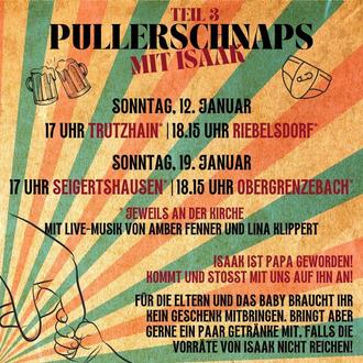 Am 19. Januar findet in Seigertshausen (17.00 Uhr) und Obergrenzebach (18.15 Uhr) wieder der jährliche „Pullerschnaps“ statt - jeweils vor der Kirche. Es handelt sich um ein kurzes Gottesdienstformat im Freien, bei dem ein Vater aus der Bibel vorgestellt und auf ihn bzw. die Geburt seines Kindes angestoßen wird. Nach Josef und Zacharias stellt Pfarrer Daniel Richebächer in diesem Jahr Isaak vor. Dazu gibt es Lagerfeuer, alkoholfreie und alkoholische Getränke sowie Live-Musik von Amber Fenner und Lina Klippert. Gerne können die Besucher noch zusätzliche Getränke mitbringen, falls die Vorräte des Gastgebers Isaak nicht ausreichen. Am 12. Januar fand er bereits in Trutzhain und Riebelsdorf statt. Zahlreiche Gäste haben hier mit Isaak angestoßen.