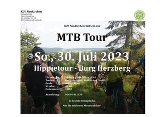 30.07.2023, 10 Uhr - KGV MTB-Tour Hippietour - Burg Herzberg, Treffpunkt: Raiffeisenplatz, Neukirchen. Nur für erfahrene Mountenbiker, Es besteht Helmpflicht.