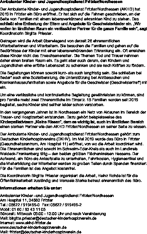 Der Ambulante Kinder- und Jugendhospizdienst Fritzlar/Nordhessen (AKHD) hat 2019 in Fritzlar ein Büro eröffnet. Er hat sich auf die Fahnen geschrieben, an der Seite von Familien mit einem lebensverkürzend erkrankten Kind zu stehen. Das schließt eine Entlastung der Eltern und Angebote für Geschwisterkinder ein. „Wir wollen im ländlichen Raum ein verlässlicher Partner für die ganze Familie sein“, sagt Koordinatorin Birgitta Priester.