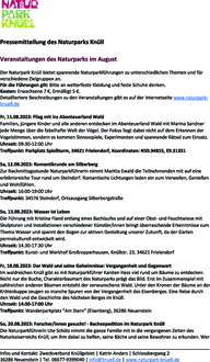 Detailliertere Beschreibungen zu den Veranstaltungen gibt es auf der Internetseite www.naturpark-knuell.de