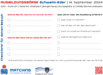 Der Schwalm-Eder-Kreis lädt auch in diesem Jahr zur Ausbildungsbörse Schwalm-Eder nach Borken (Hessen) ein, nun schon zum 20. Mal!