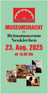 Am 23.08.2025 ab 16:00 Uhr veranstaltet das Heimatmuseum Neukirchen eine Museumsnacht. Sie sind herzlich hierzu eingeladen.