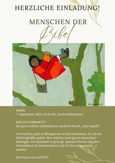 | 10.45 Uhr | 10.45 Uhr | Familiengottesdienst mit Pfarrerin Bieker-Dittschar „Menschen der Bibel“ |