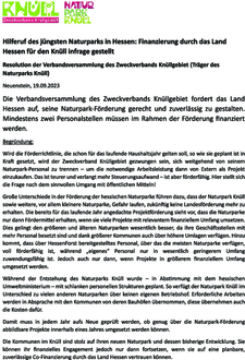 Die Kommunen im Knüll sind stolz auf ihren neuen Naturpark und dessen bisherige Entwicklung. Sie können ihr finanzielles Engagement jedoch nur dann fortsetzen, wenn sie auf eine planbare, zuverlässige Co-Finanzierung durch das Land Hessen vertrauen können.