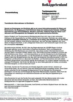 Zentral am Ortseingang von Kirchheim gibt es ein neues Informationsangebot für Gäste und Einheimische. Am Eingang zum Café Kirchheim bietet eine elektronische Infostele vielfältige Informationen zum Thema Radfahren, Wandern und Kultur. Natürlich findet der Nutzer auch Adressen und Öffnungszeiten der Gastgeber und der gastronomischen Betriebe. Heidrun Englisch vom Tourismusservice Rotkäppchenland freut sich, dass in dem schmucken Holzhaus an der Hauptstraße 2a, wo früher mal die Tourist-Information Kirchheim war, wieder eine touristische Anlaufstelle entstanden ist. „In Kirchheim ist es wichtig, dass Reisende, die für eine Pause von der Autobahn abfahren, einen Eindruck bekommen, was man hier alles angeboten wird. Auch Gäste im Seepark Kirchheim, in den umliegenden Hotels oder in den Ferienwohnungen können sich hier unkompliziert informieren.“