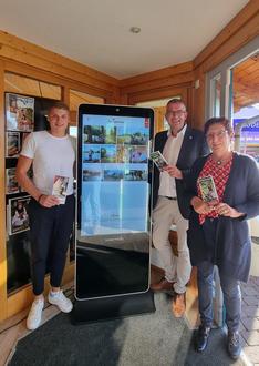 Die elektronische Infostele, die 2021 über das Regionalbudget der LEADER Region Knüll als Pilotprojekt gefördert wurde, stand bisher im Rasthaus Hessenland. Nach vorrübergehender Schließung des SVG Rasthauses war schnell klar, dass dieses modere Informationsterminal an zentraler Stelle in Kirchheim erhalten bleiben muss. Die Familie Gronowski bereitete im Vorraum des Cafe Kirchheims einen Strom – und Internetanschluss vor und die Infostele konnte die Straßenseite wechseln, also von der Hauptstraße 1 an die Hauptstraße 2a umziehen. Ergänzend zu dem digitalen Angebot bietet das Rotkäppchenland hier aber auch das klassische Informationsmaterial in Form von Prospekten und Broschüren an. Besonders die Radfahr- und Wanderbroschüren sind sehr beliebt. Kirchheims Bürgermeister Axel Schmidt begrüßt die Kombination von moderne digitaler Information mit analogem Printmaterial. „Hier finden die Besucher an einer Stelle gebündelt ein breites und aktuelles Informationsangebot, so wie es heute sein muss“.