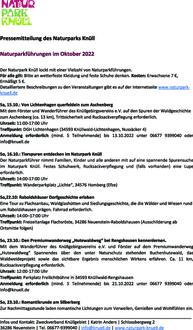 Detailliertere Beschreibungen zu den Veranstaltungen gibt es auf der Internetseite www.naturpark-knuell.de