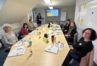 Die Workshopreihe für Existenzgründer*innen im Coworking Space Schwalmstadt ist gut besucht. In kleinen Gruppen werden verschiedene Themenfelder erarbeitet (Foto: VGZ Schwalm)
