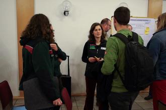 Angeregte Diskussionen zu den Projekten des Naturparks Knüll (Katrin Anders, Geschäftsführerin Naturpark Knüll mit interessierten Gästen der Veranstaltung)