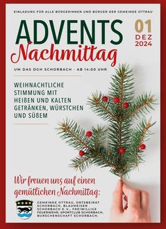 ich darf Sie ganz herzlich zu unserem ersten gemeindlichen Adventsnachmittag für Sonntag, den 01.12.2024 ab 14:00 Uhr rund um das DGH Schorbach einladen.
