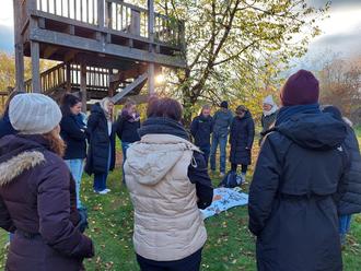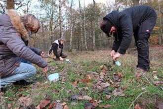 Umgesetzt wurden die Fortbildungen von den beiden Kooperationspartnern Umweltbildungszentrum Licherode und Naturzentrum Wildpark Knüll. Lena Heilmann vom Umweltbildungszentrum zeigte mit einem Natur-Memory, wie mit einfachen Mitteln spielerisch der Blick auf die Details in der Natur gelenkt werden kann. Bei der Suche nach einer Frucht oder den Blättern eines bestimmten Baumes wurde bei den Erzieher/innen der Entdeckergeist geweckt und der Blick auf die umgebende Natur geschärft. Sara Engelbrecht vom Wildpark Knüll baute mit den Teilnehmer/innen zunächst ein Waldsofa als Basislager. Von dort aus ging es in der Umgebung auf Spurensuche - ausgegossen mit Gips konnten gefunden Tierspuren sogar zum Abschluss mit nach Hause genommen werden.
