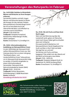 Detailliertere Beschreibungen zu den Veranstaltungen gibt es auf der Internetseite www.naturpark-knuell.de