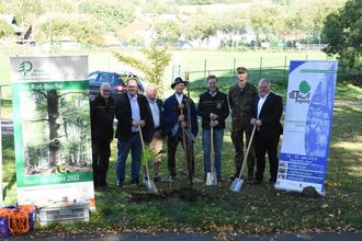An der Kulturhalle in Schwarzenborn pflanzten das KWF in Person von Stefan Meier, der Bürgermeister der Stadt Schwarzenborn, Jürgen Liebermann, der Bürgermeister der Stadt Neukirchen, Marian Knauff und der amtierende Baumkönig der Baum des Jahres – Dr. Silvius Wodarz Stiftung, Nikolaus Fröhlich, gemeinsam eine Rotbuche.
