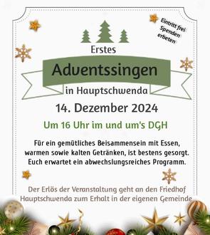 | 16.00 Uhr | Adventssingen in Hauptschwenda |