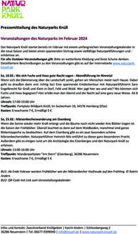 Der Naturpark Knüll startet bereits im Februar mit einem umfangreichen Veranstaltungskalender in die neue Saison und bietet einen spannenden Vortrag sowie vielfältige Naturparkführungen und – erlebnisse an.