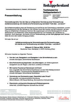 | - | Auf den neuesten Stand gebracht: Unsere Region, touristische Infrastruktur und Reisetrends |