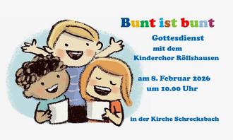 | 10.00 Uhr | Kirche Schrecksbach mit dem Kinderchor Röllshausen, Pfarrerin Stephanie Fink |