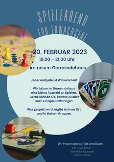 | 20.02., | 19.00 - 21.00 Uhr Spieleabend für Erwachsene |