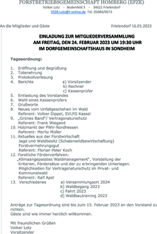 Anträge zur Tagesordnung sind bis zum 15. Februar 2023 an den Vorstand zu richten.