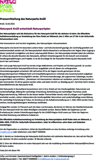 Die öffentliche Auftaktveranstaltung zur Entwicklung des Naturparkplans Knüll findet statt am Mittwoch, 1. März 2023, 17:00 Uhr, Kulturhalle Schwarzenborn. Jeder ist willkommen, seine Ideen und Gedanken einzubringen.