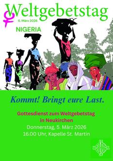 | 05.03., | 16.00 Uhr | Gottesdienst zum Weltgebetstag in der Kapelle St. Martin mit Lektorin Weishaar & Weltgebetstagsteam |