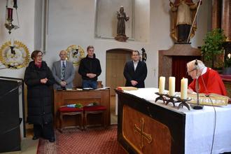 Im Anschluss an den feierlichen Gottesdienst, den Pfr. Josef Schlitt in der Barockkirche von Haselstein zelebrierte, überbrachte die Bürgermeisterin Frau Marion Frohnapfel die Glückwünsche der politischen Gemeinde.