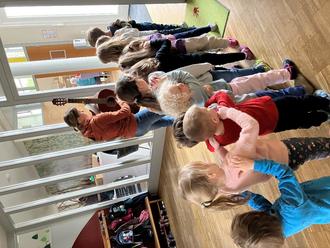 Am ersten Tag hatten die Kinder und ihre Erzieherinnen die Senioren und die Pflegekräfte spontan mit einem Willkommenslied begrüßt. Den darauffolgenden Tag sangen die Senioren*innen für die Kinder das Kreuzberglied und es wurde dabei kräftig geschunkelt. Es war eine so freudige und dankbare Atmosphäre, die so voller Sehnsucht war, dass wir alle spüren konnten, wie „ausgehungert“ wir waren. Es ist und bleibt ein einzigartiges Projekt, was keines gleichen kennt. Auch in den letzten Tagen, bei der Frage, ob einige Kinder Lust hätten mit einer Erzieherin, zu den Senioren*innen rüber zu gehen und mit ihnen gemeinsam etwas Schönes zu machen, war die Resonanz so groß, dass die Kinder in zwei Gruppen geteilt werden mussten.